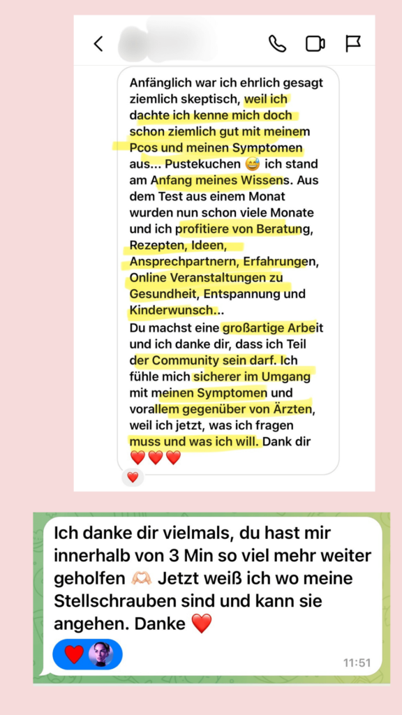 Die Community ist mein Leben. Ich bin für meine PCOS Damen zu jederzeit da und kümmere mich intensiv um jede einzelne von ihnen!